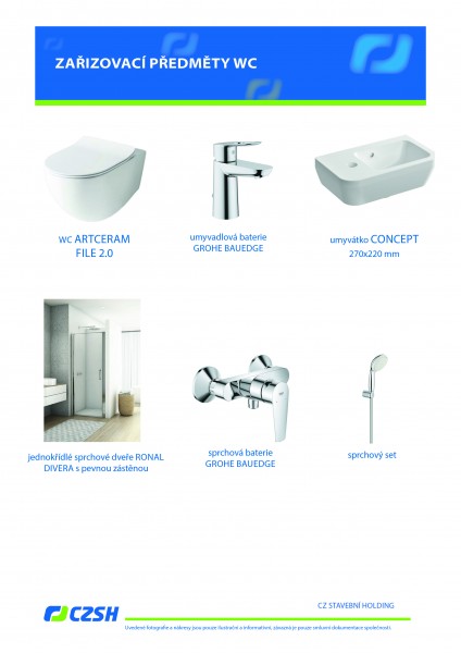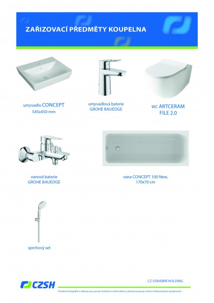 stropní svítidlo v koupelnách a na WC, vývod pro svítidlo nad umyvadlem